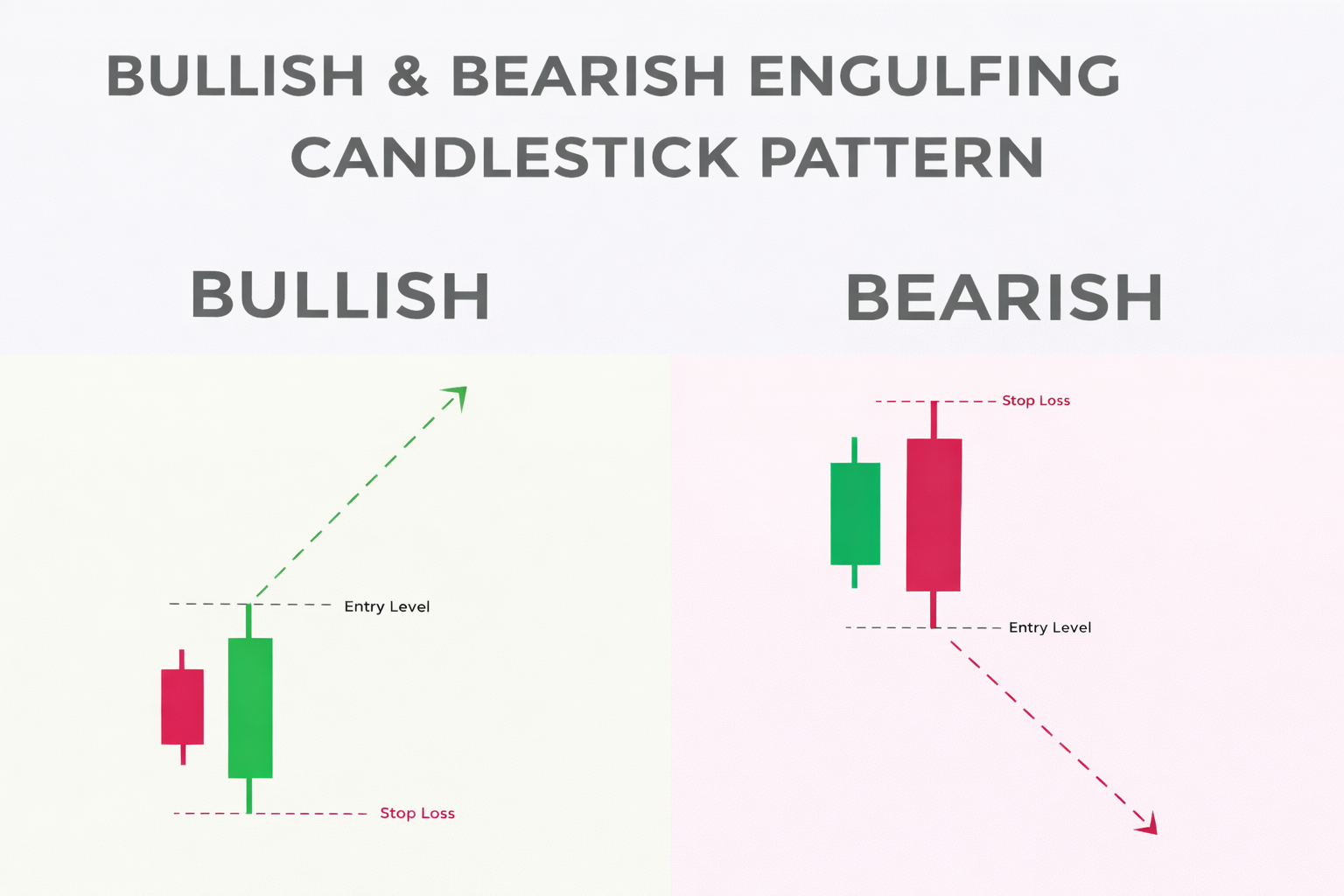 - Bearish Engulfing adalah kebalikannya, dengan candle merah besar yang menelan candle hijau sebelumnya, mengisyaratkan potensi Bearish reversal.
